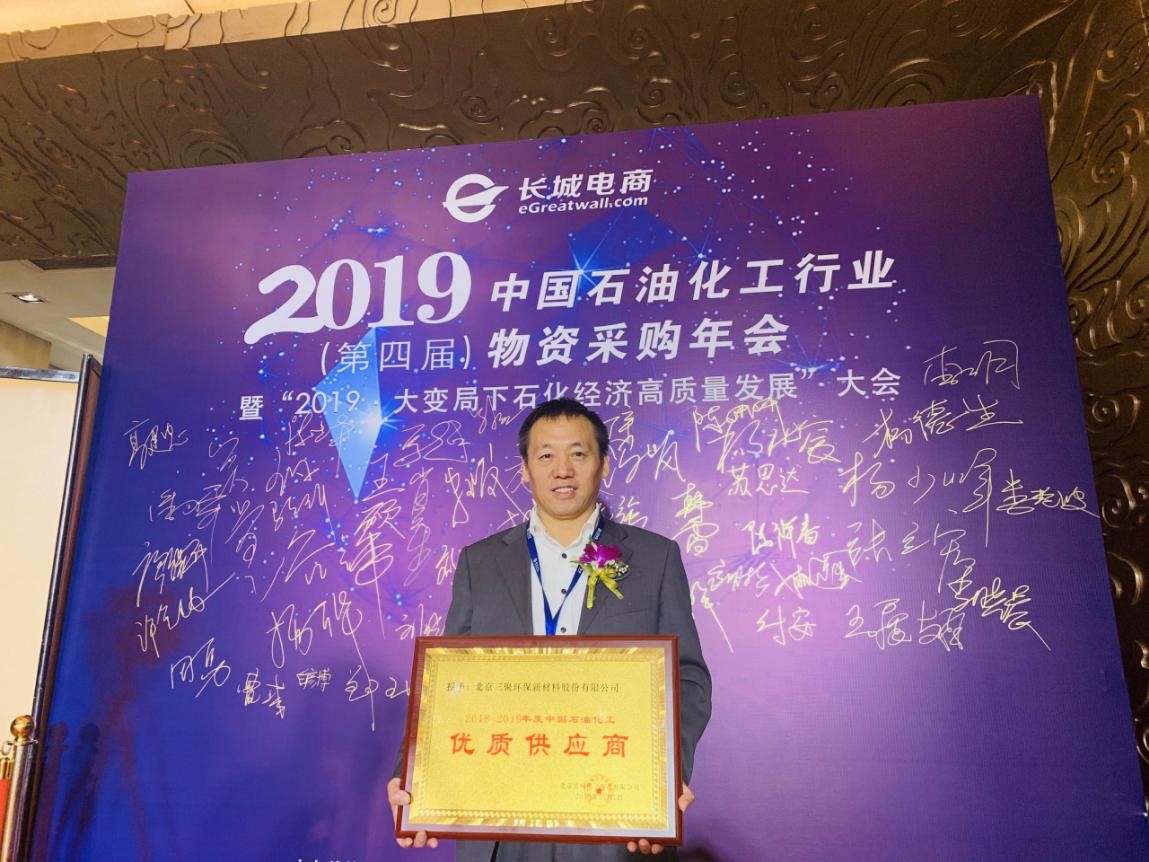 11月7-8日,2019(第四屆)中國石油化工行業(yè)物資采購年會暨2019大變局下石化經(jīng)濟高質(zhì)量發(fā)展大會在北京召開。三聚環(huán)保榮獲2018-2019年度中國石油化工“優(yōu)質(zhì)供應商”榮譽稱號,三聚環(huán)保市場營銷部總經(jīng)理許金林出席會議并領獎。